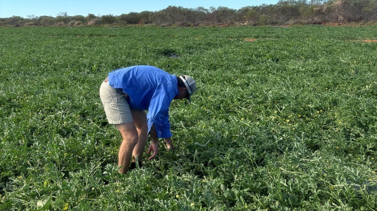 Kane inspects melons on their Broome property