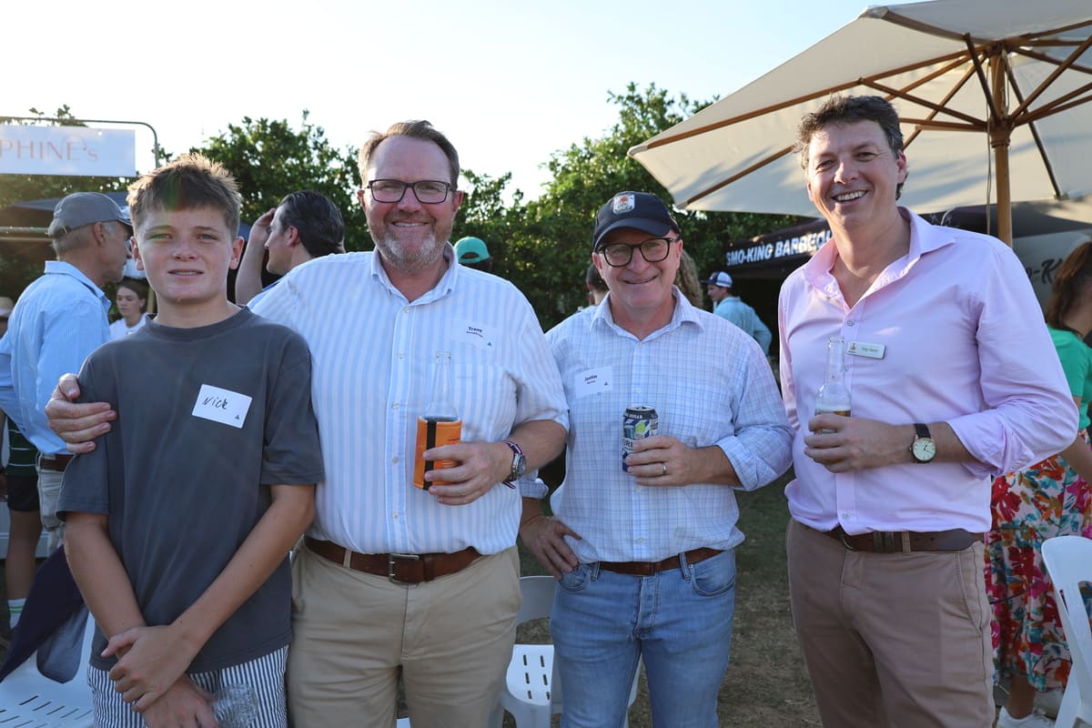 Emily and Harry Cush, Paul and Lisa Slack, and Lucy Cush toast the Moree season.
